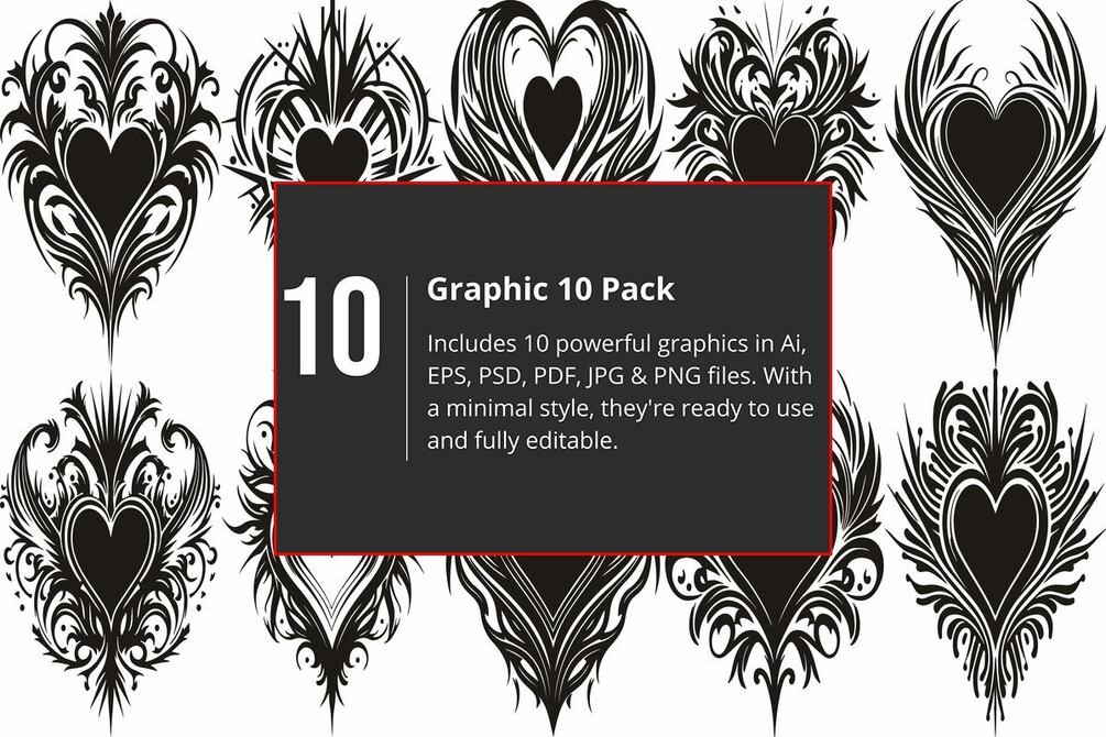 The collection offers 10 meticulously crafted designs in various file formats, perfect for enhancing a range of items. They are fully editable, scalable, and can be seamlessly integrated with your creative tools, offering a timeless minimal style that can ignite inspiration and infuse your work with raw power and beauty.